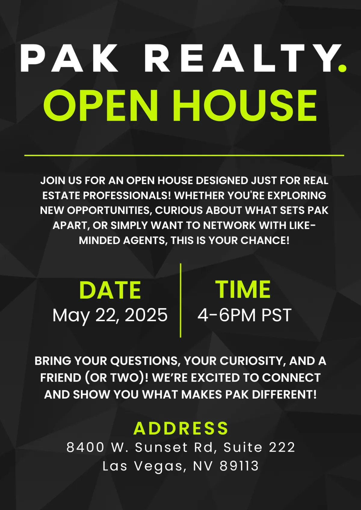 Whether you're actively seeking a change or just curious, this is your chance to learn about the unique growth paths, support systems, and tools available to agents at PAK Realty.